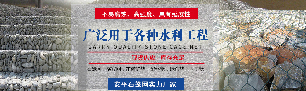 本公司主要生產:石籠網格賓網、重型六角網、鍍高爾凡格賓擋墻、雷諾護墊綠濱墊固濱籠、耐特籠、鉛絲石籠格賓石籠、電焊石籠網、鍍鋅石籠網、河道石籠網、包塑石籠網、勾花網、高爾凡石籠網、三擰石籠網、五擰石籠網等,可用于保護和支持河道、海堤、山坡、路橋、水庫及其他土木工程, 是防洪固堤工程的上好材料。以可靠的質量,滿意的售后服務深受新老客戶的好評。